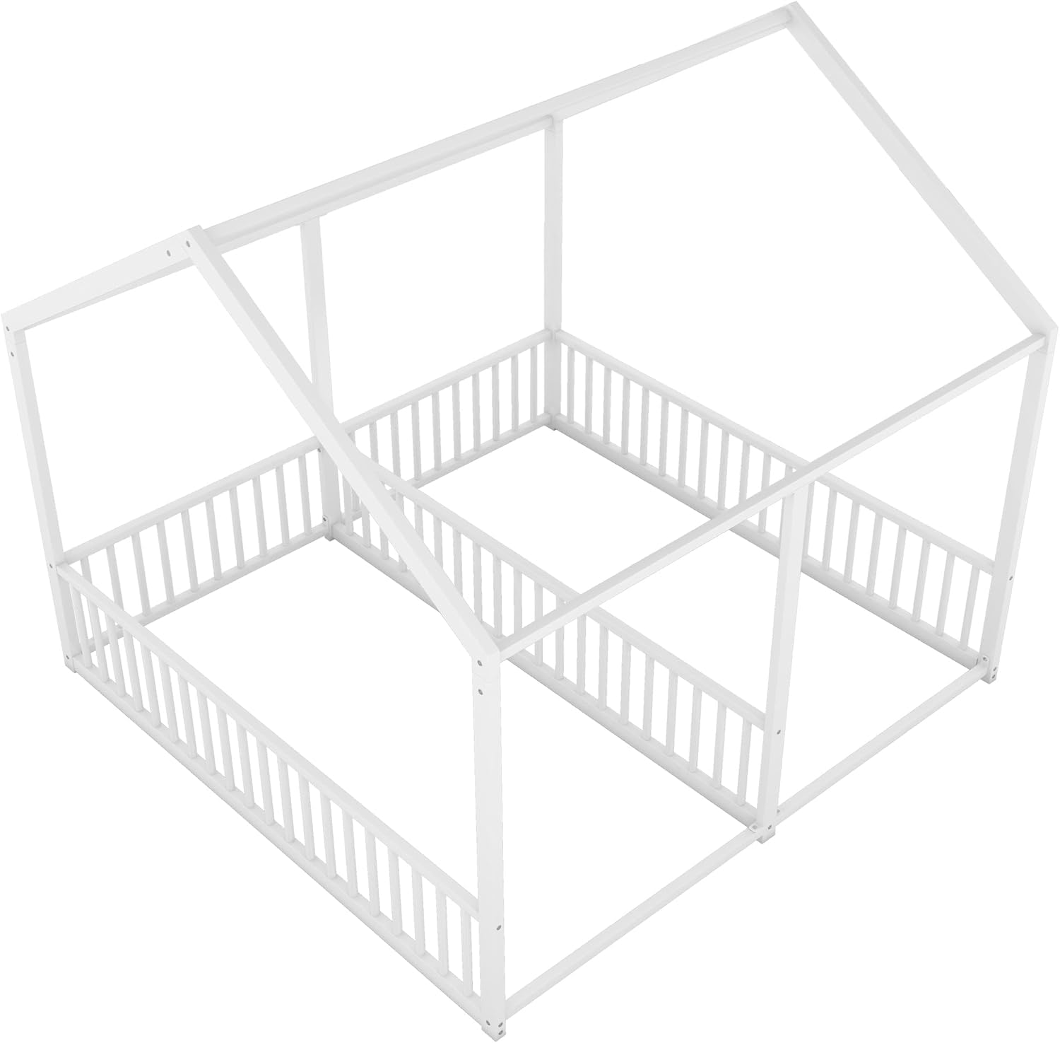URKV Twin Size Loft Bed with Desk and Storage Shelves, Heavy Duty Loft Bed Frame with Safety Guardrail for Kids Boys Girls | Metal Bunk Bed with Ladder for Home (White)