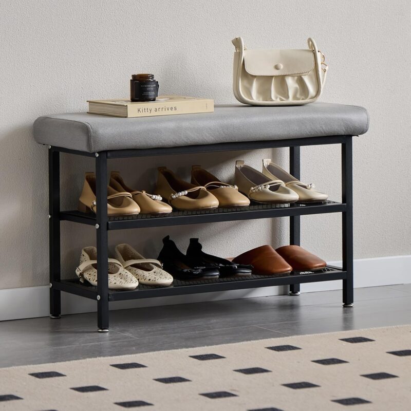 URKV 3-Tier Shoe Storage Rack with Leather Cushion Seat for Home Portable Shoe Rack Chappal Stand Sneakers Slippers Stand Footwear Shoe Rack Organizer for Entryway Living Room Office