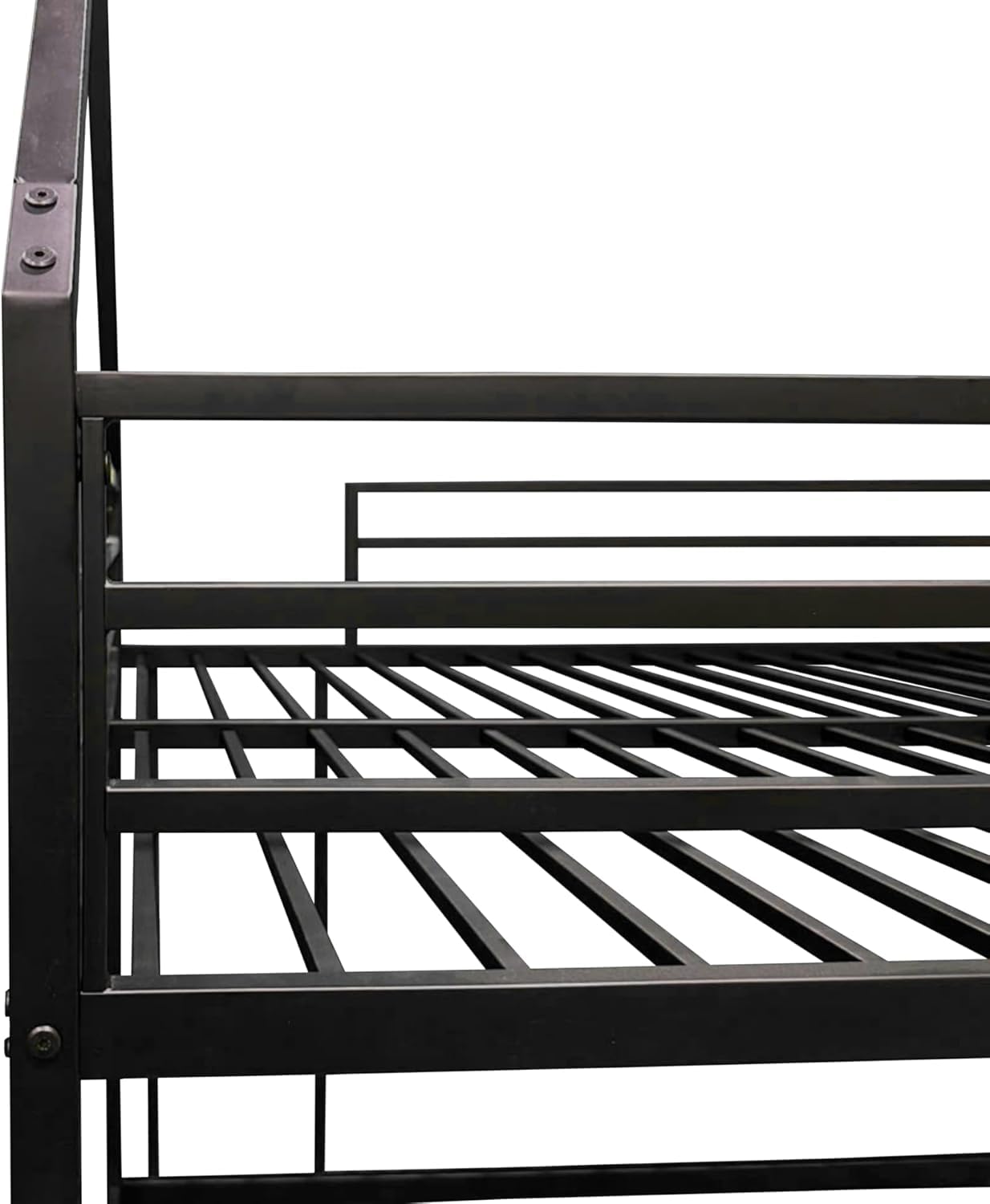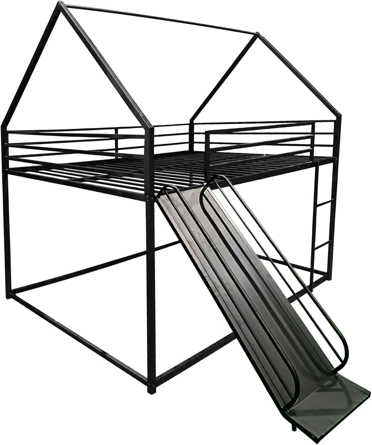 Metal Kids Bunk Bed with Slide & Ladder – House Shaped Twin Over Twin Bed Frame for Boys & Girls |