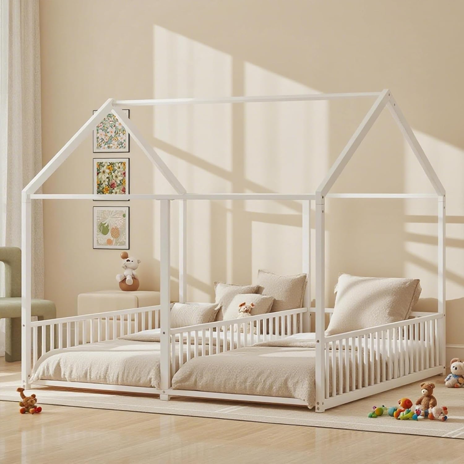 Be the first to review “Twin Floor Bed House Frame for Kids | Two-Person Metal Play Bed with Slatted Rails |”