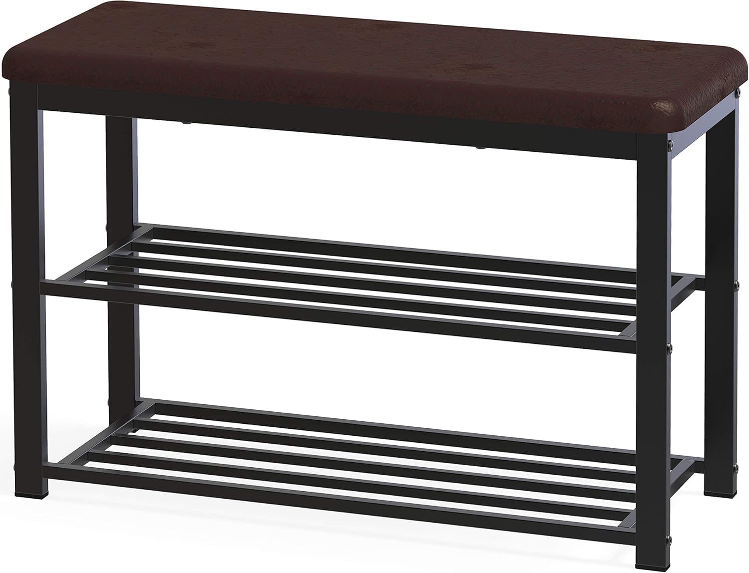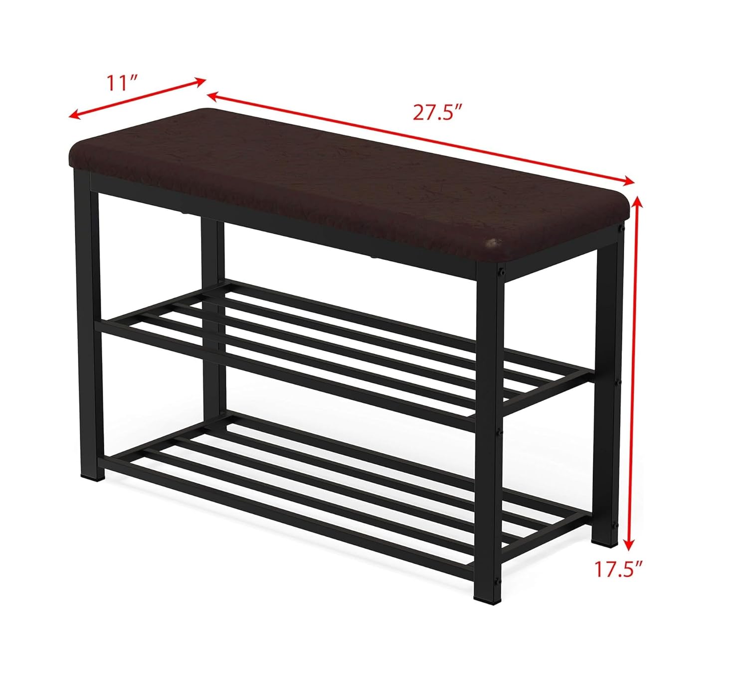 URKV 3-Tier Shoe Storage Rack with Leather Cushion Seat for Home Portable Shoe Rack Chappal Stand Sneakers Slippers Stand Footwear Shoe Rack Organizer for Entryway Living Room Office