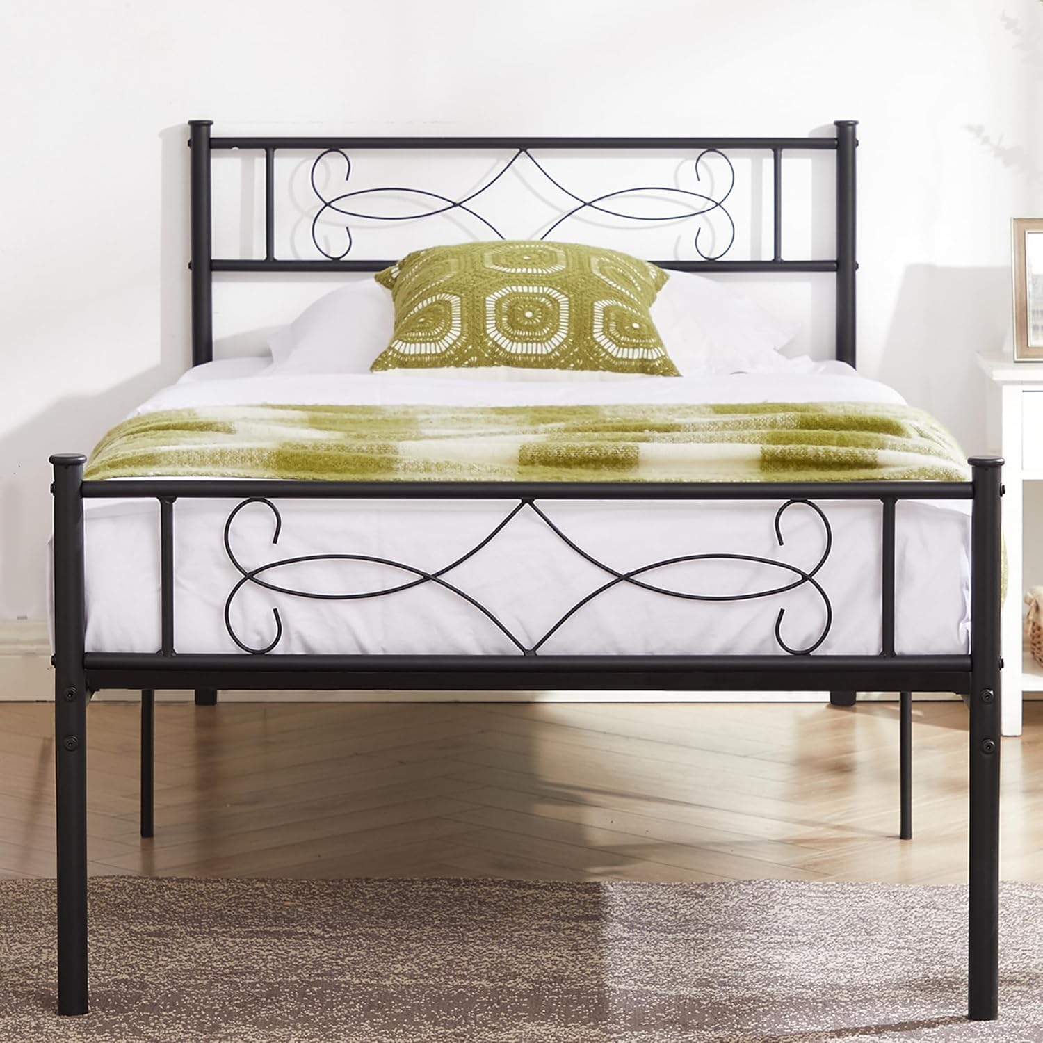 - 【Headboard Design】Compared with other metal beds, this classic bed frame has a higher headboard to better protect your head and provide you with a comfortable sitting place.