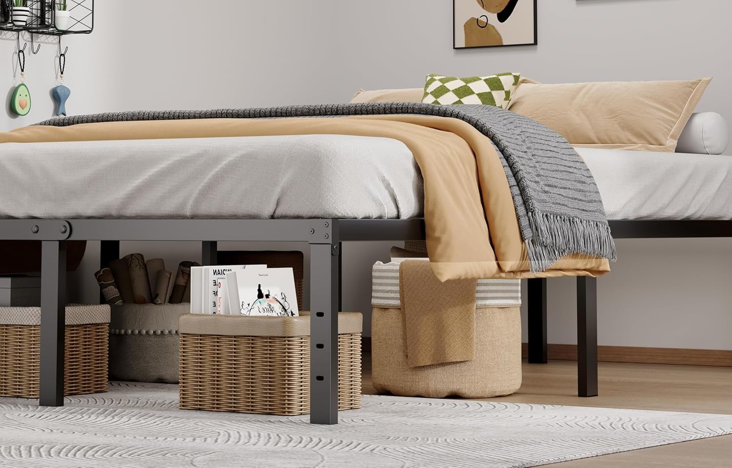 - Space Saving: King bed frame has a large storage space under the bed, which brings more storage space for storing extra odds and ends, easy clean and keep the room neat & organized