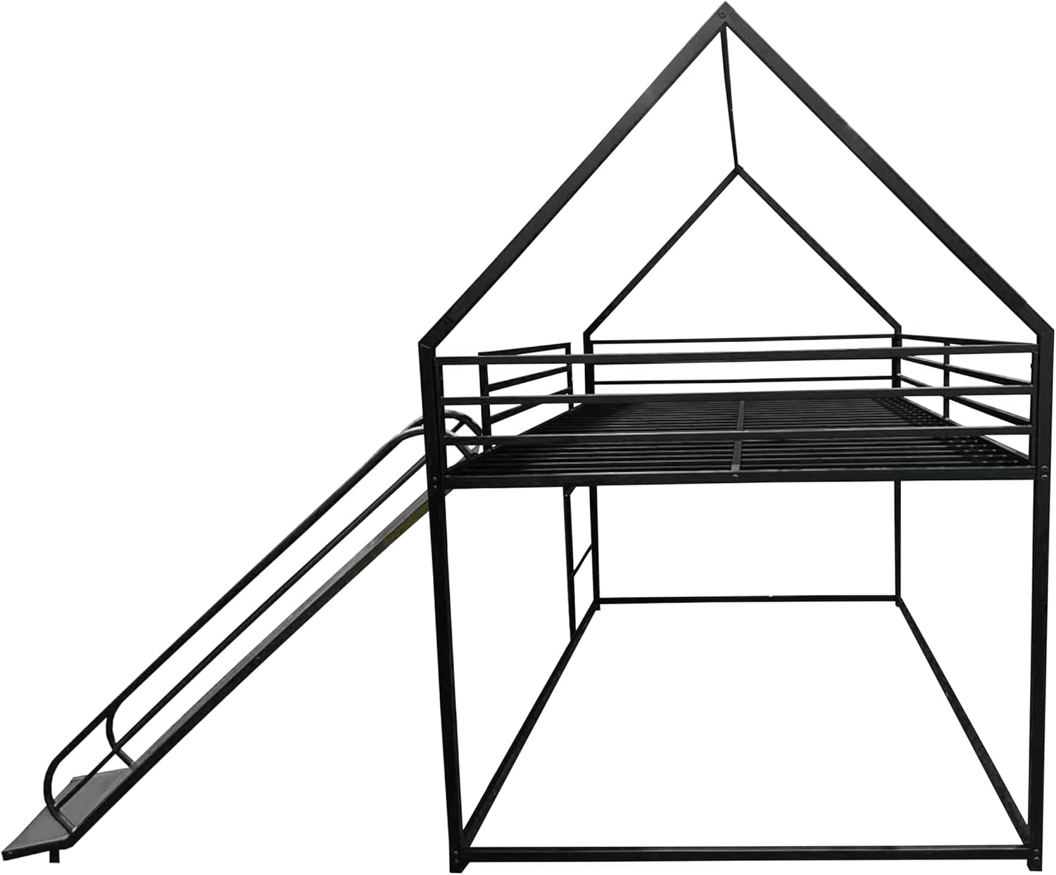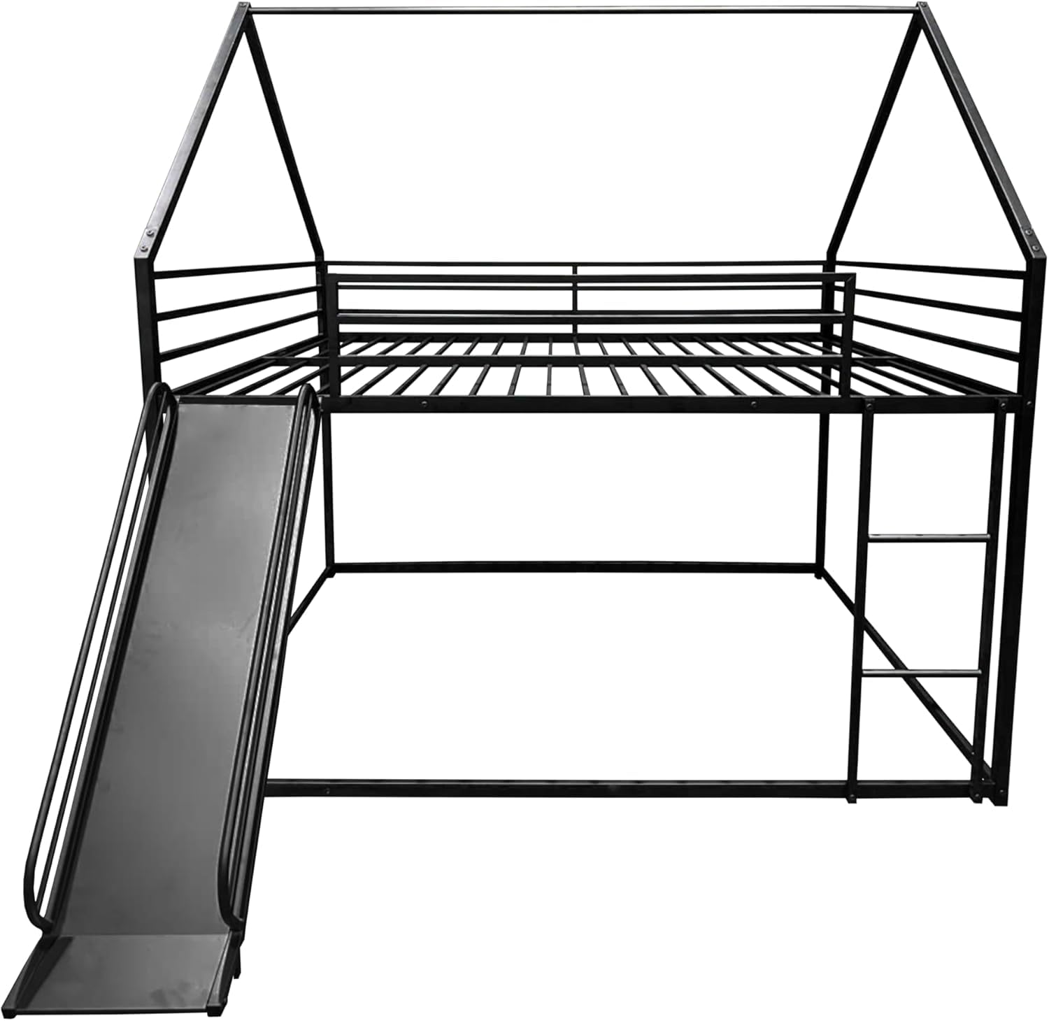URKV Metal Kids Bunk Bed with Slide & Ladder – House Shaped Twin Over Twin Bed Frame for Boys & Girls | Low Loft Bunk for Toddlers & Children | Modern Black Playhouse Bed for Kids Room