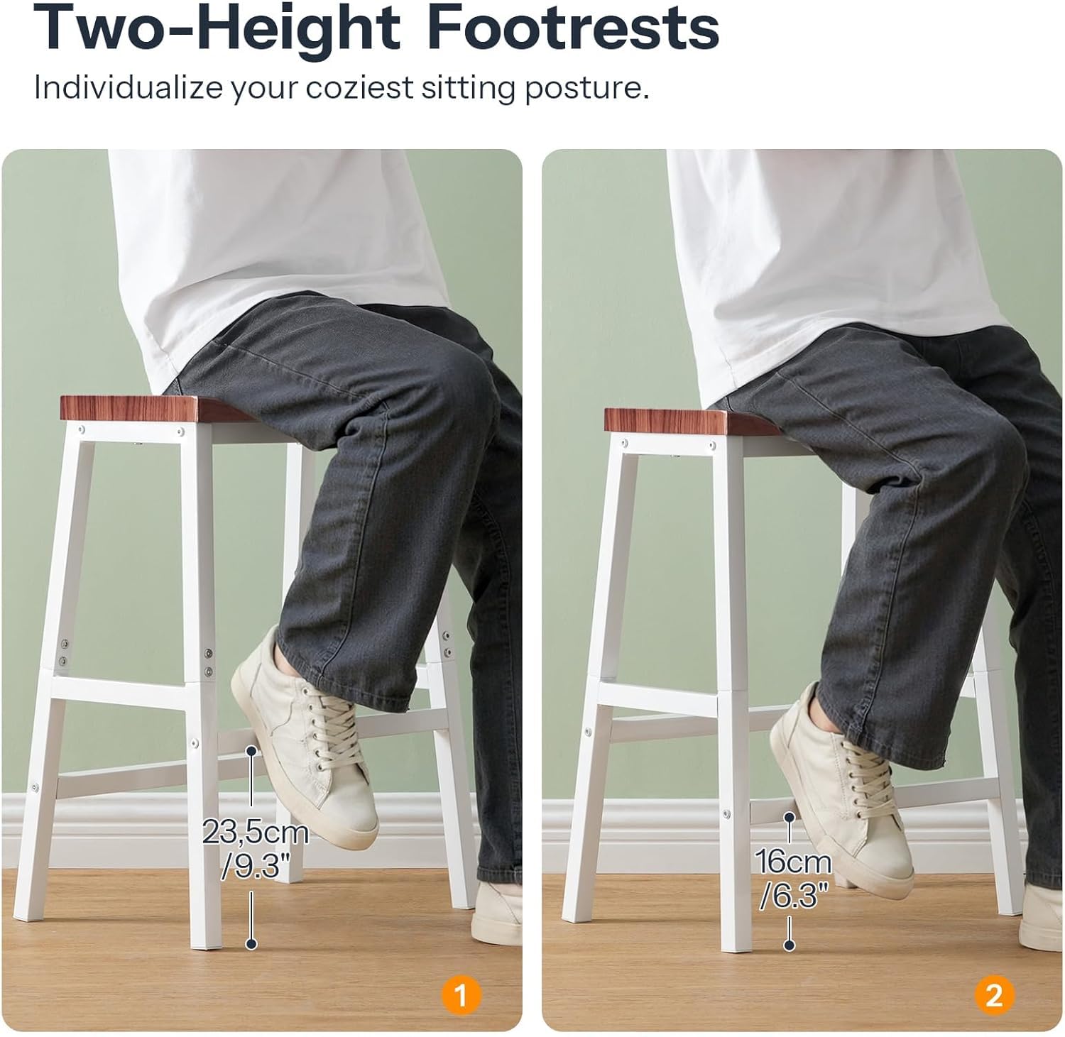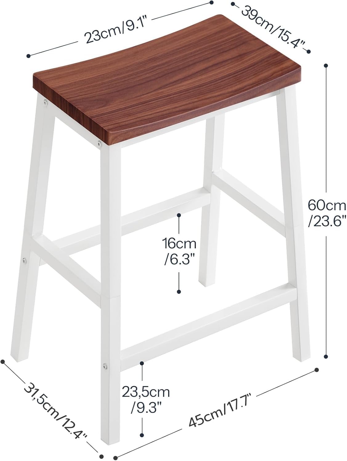 URKV Set of 2 Wooden Bar Stools – Industrial Counter Height Chairs with Metal Frame for Kitchen Island, Dining, Home Bar, Pub & Café