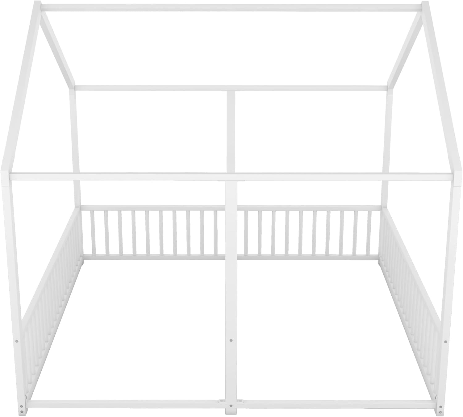 URKV Twin Floor Bed House Frame for Kids | Two-Person Metal Play Bed with Slatted Rails | Low Profile Toddler Bed for Siblings & Co-Sleeping | Modern Children’s Bedroom Furniture