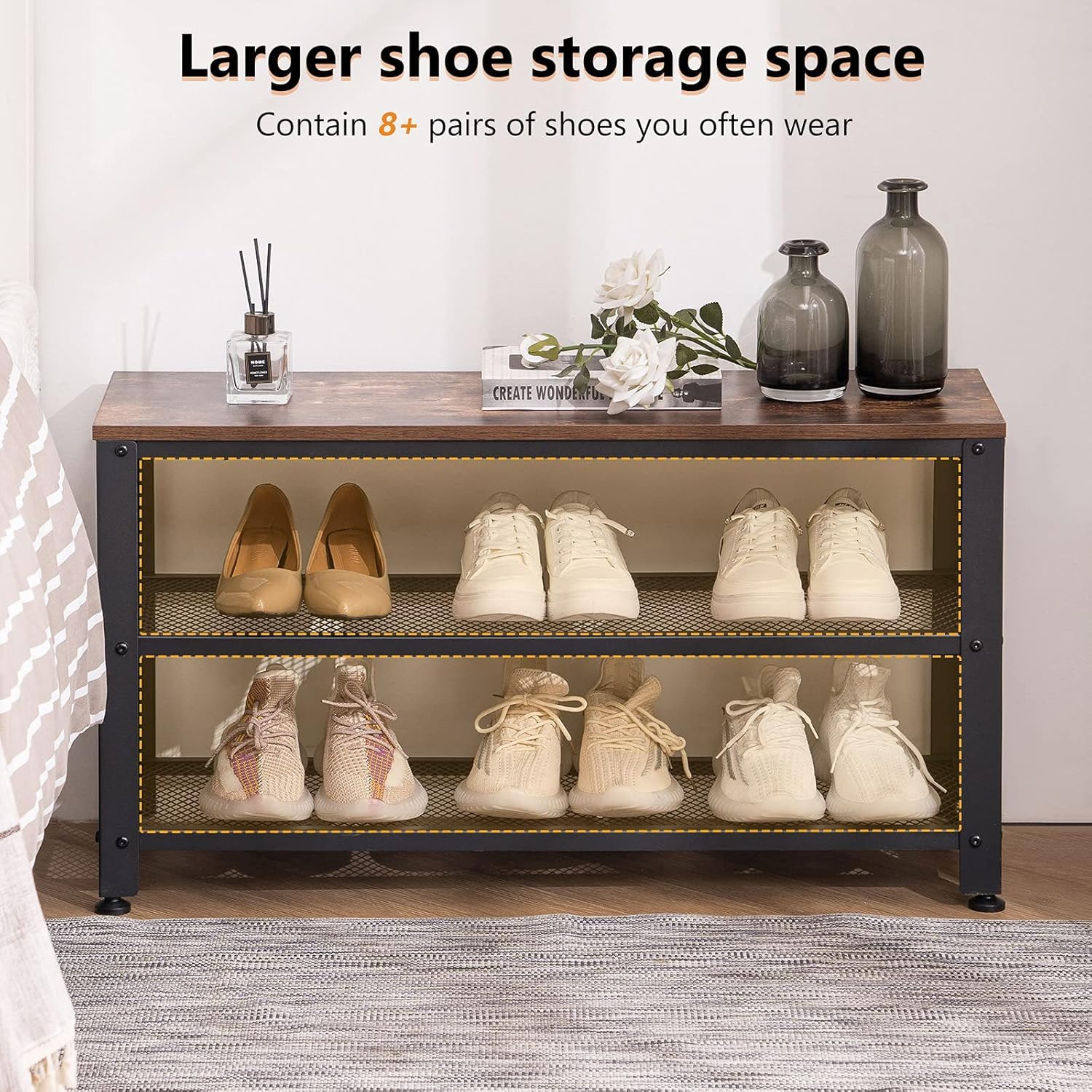 - 3-Tier Storage: Ample space to organize shoes, boots, sneakers, and more.