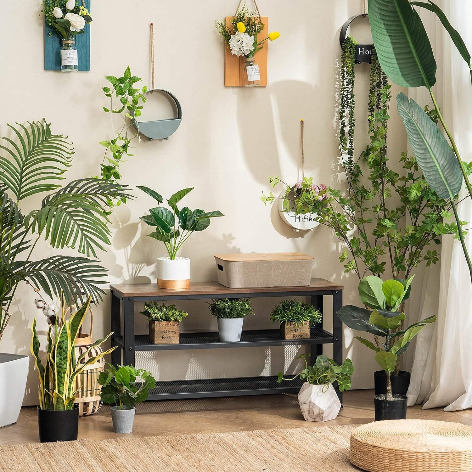 - Durable Construction: Strong metal frame with wood shelves for a long-lasting, sturdy structure.